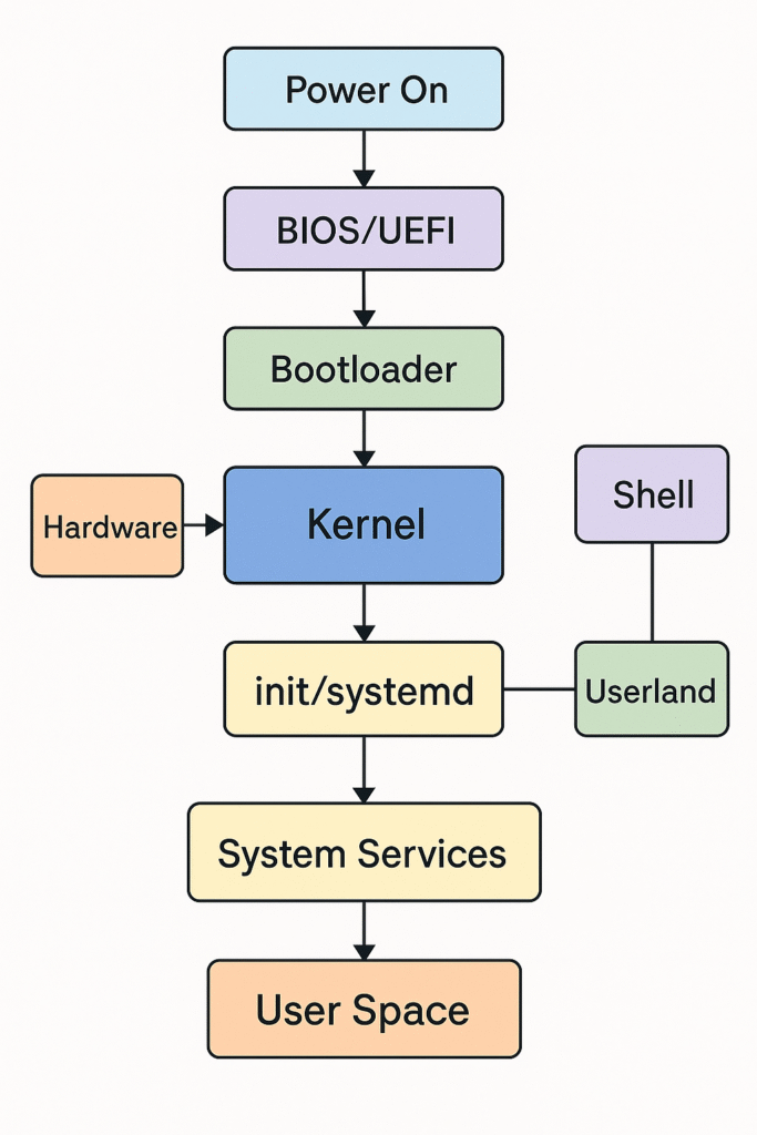• Userland: Everything else—applications, libraries, system tools, file explorers, etc.